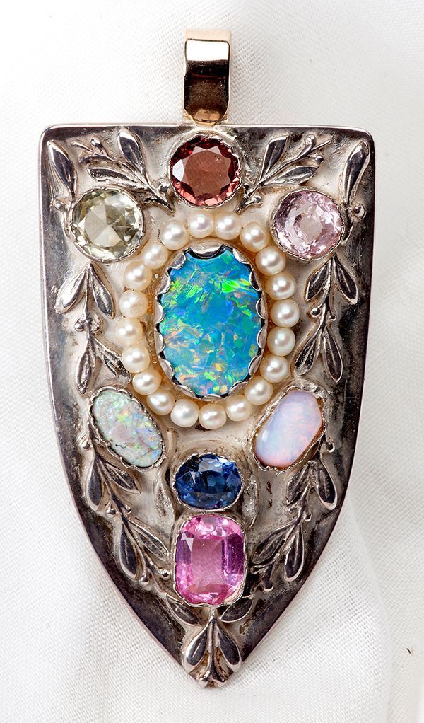Custom Made Gemstone, Silver Floral Design Brooch