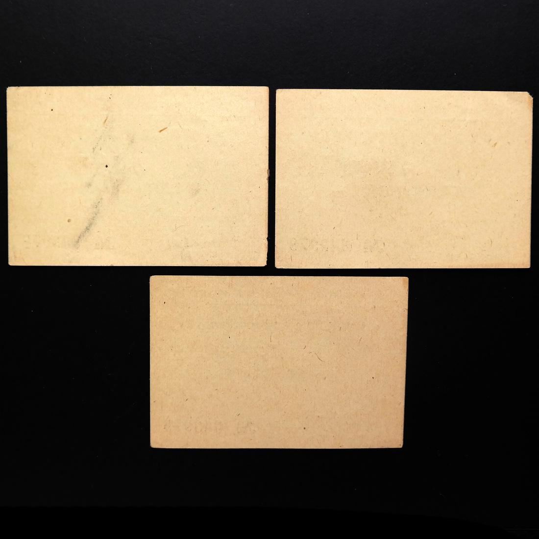 Konzentrationslager Dachau / Prmienschein / Wert: RM. 2.- on cream paper, consecutive serial #343977, 343978 and 343979, prisoner #46958 in pencil on each, each measures approx 75 by 50mm, #343978 has a tiny edge tear and rounded corner, overall VF.