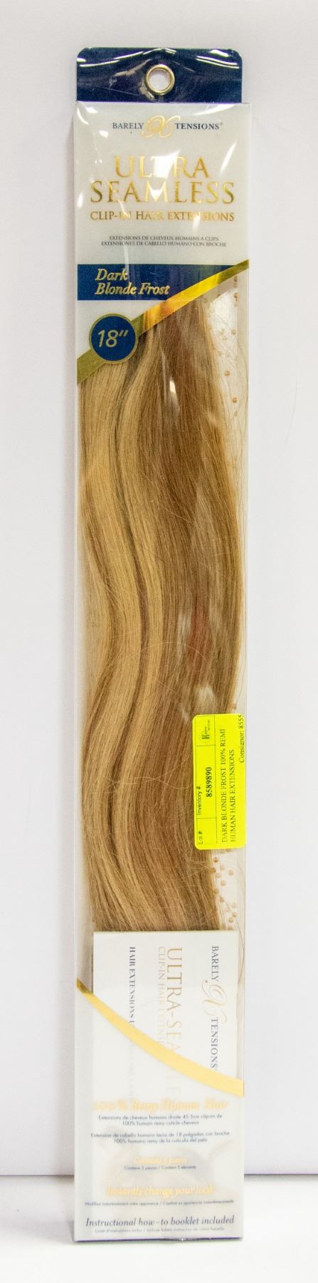 18" LONG - BRAND NEW IN PACKAGE ULTRA SEAMLESS CLIP-IN HAIR EXTENSIONS - DARK BLONDE FROST IN COLOUR - 100% REMI HUMAN HAIR SEAMLESS CLIP-IN EXTENSIONS
