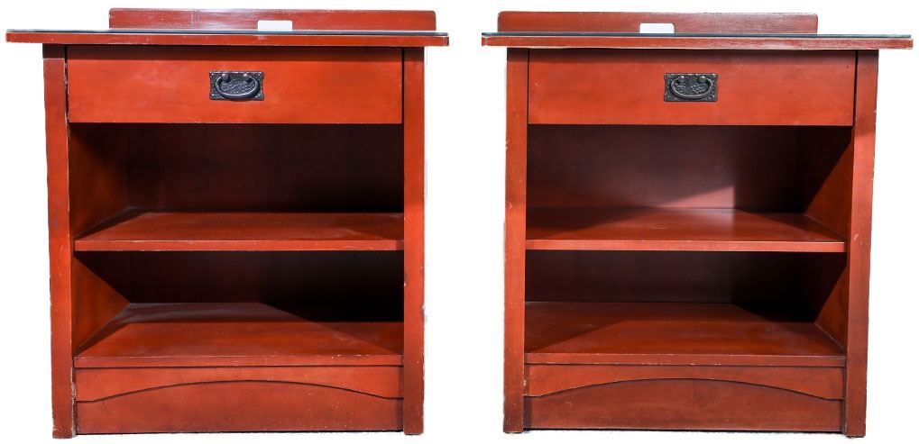 (Disney California Adventure, c. 2000's). Disney California Adventure, Grand Californian hotel room bed stands as used by guests. The bed stands are in good working condition with normal wear from age and hotel use, including minor wear edge on surface scratches from hotel use. Each measures 31" Tall x 20" x 30". Item comes with a Grand Circle Tour Auctions COA.