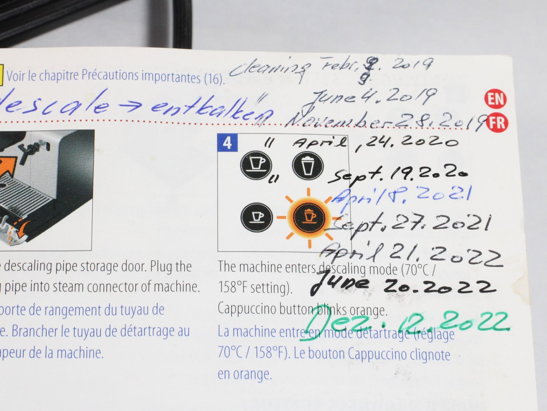 MANUAL (RECORDS OF DATES CLEANED HAND WRITTEN IN MANUAL)