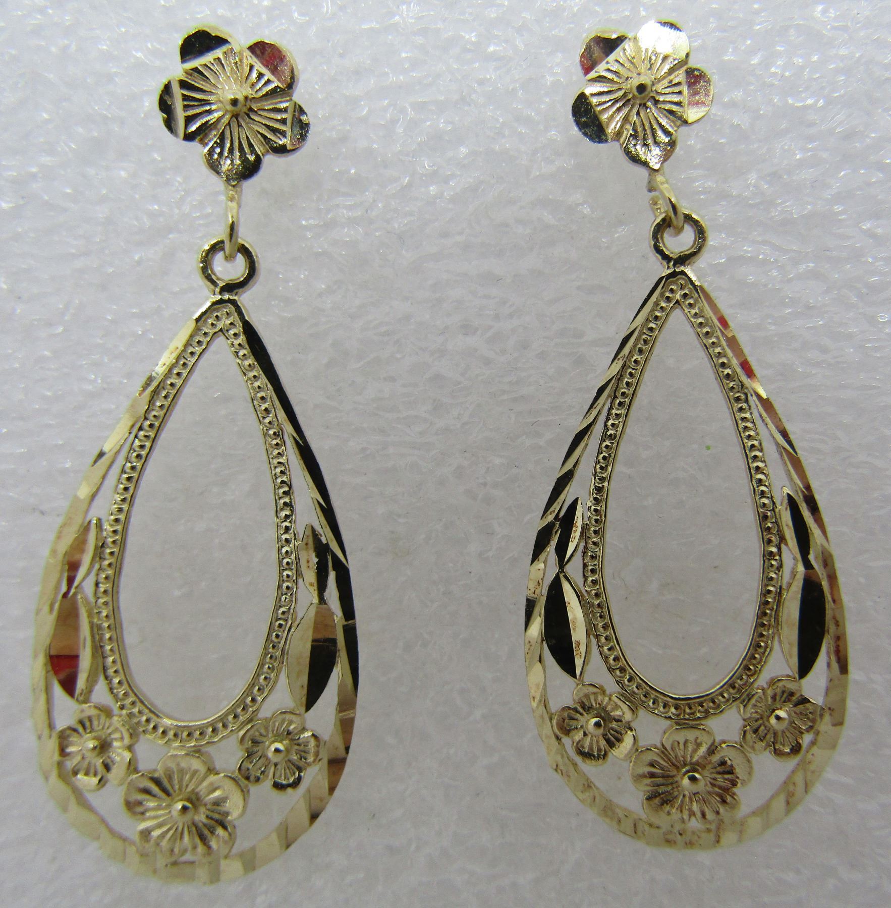 VINTAGE ESTATE MARKED "V? 14KT". 15MM WIDE BY 39MM LONG. 14KT YELLOW PIERCED POST. WEIGH 3 GRAMS. EXCELLENT USED CONDITION. USA SHIPPING $5.