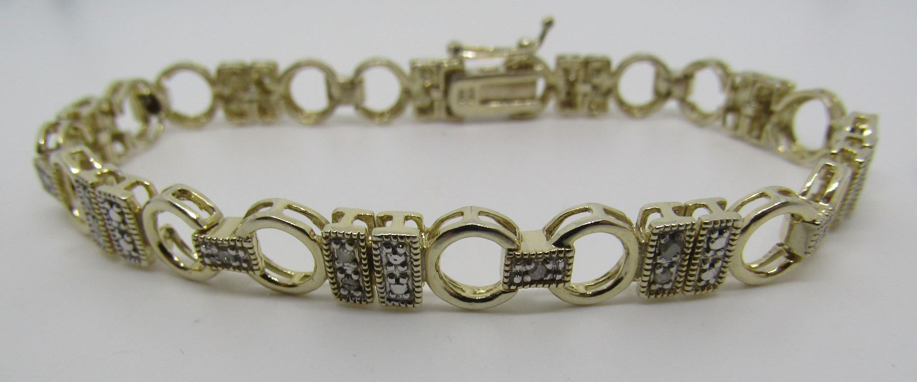 25 DIAMOND GEMSTONE IN 7.25" LONG LINK CHAIN. WEIGHS 10.6 GRAMS. YELLOW GOLD ON STERLING SILVER. HALLMARKED "FAS". EXCELLENT CONDITION, VINTAGE ESTATE. USA SHIPPING $5.