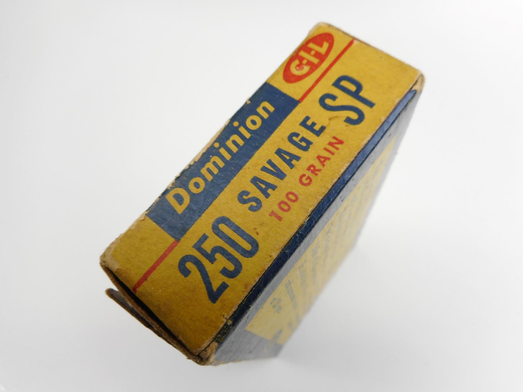 DOMINION 250 SAVAGE SP AMMO , 20 RNDS DOMINION 250 SAVAGE SP, 100 GRNS, IN VINTAGE DOMINION BOX