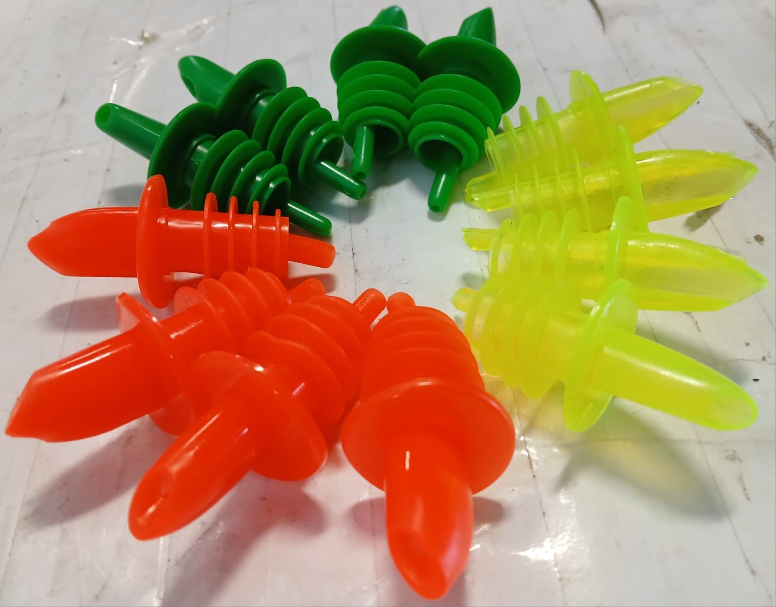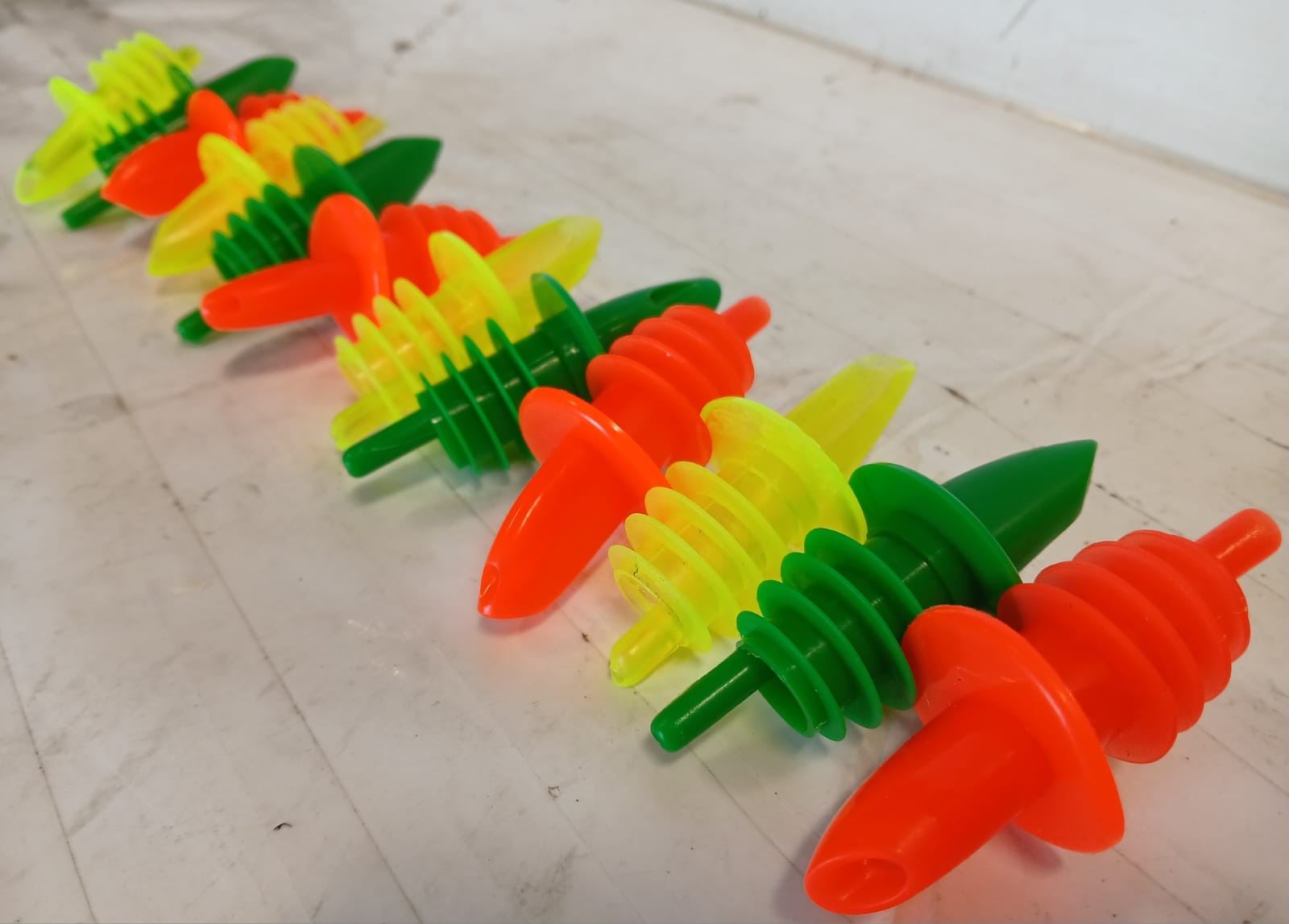 DOZEN NEW FLOURESCENT FREE FLOW BOTTLE POURERS