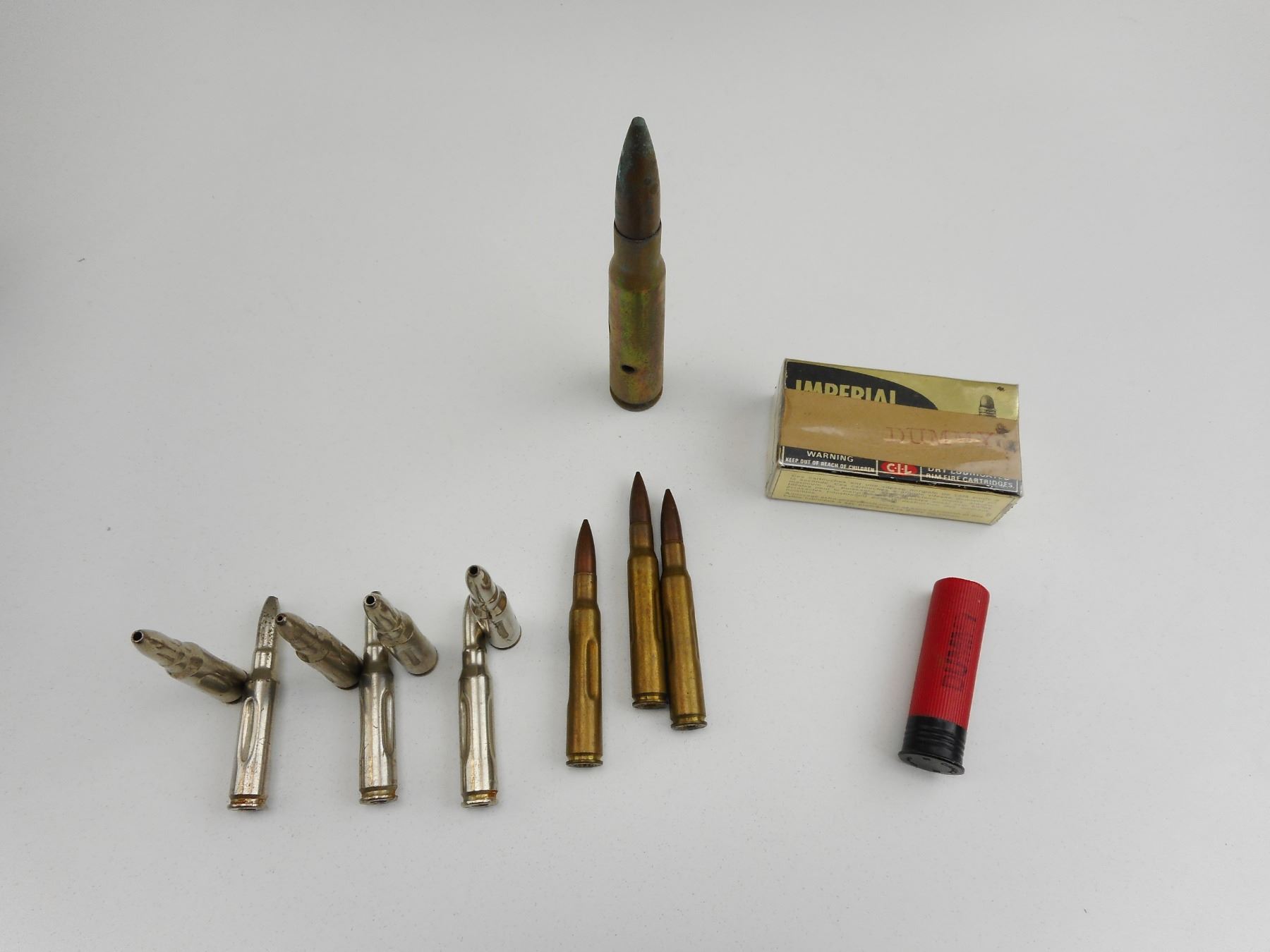 DUMMY'S ASSORTED , 62 DUMMY RNDS, INCLUDING 16 GA. .30 SPRG., 6.5MM, 22 LONG RIFLE, 50 CAL.