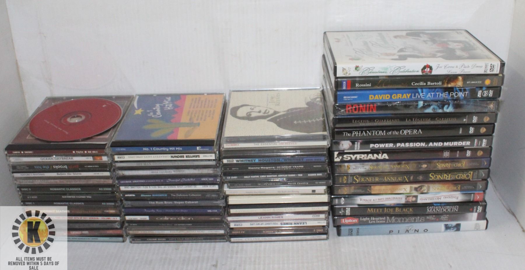 DVD'S & CD'S- BOX LOT OF 53 ASSORTED