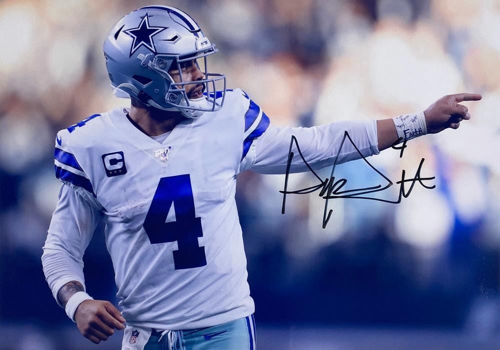 Dallas Cowboys Dak Prescott facsimile signed photo. 8x10 inches. This item is a reprint of an original autograph
