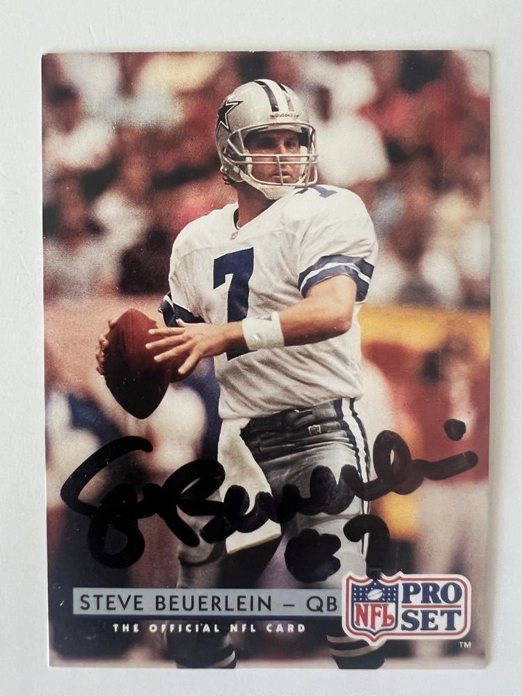Dallas Cowboys Steve Beuerlein 1992 Pro Set #145 signed trading card