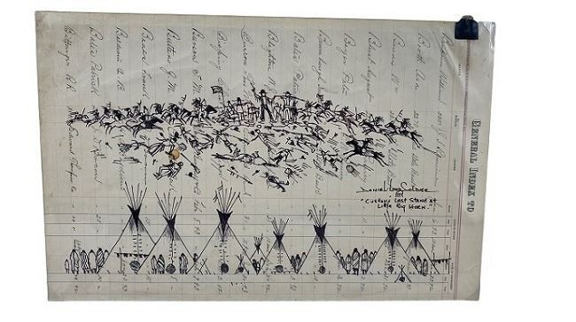 Daniel Long Soldier Original Ledger Art- Custers Last Stand at Little Bighorn