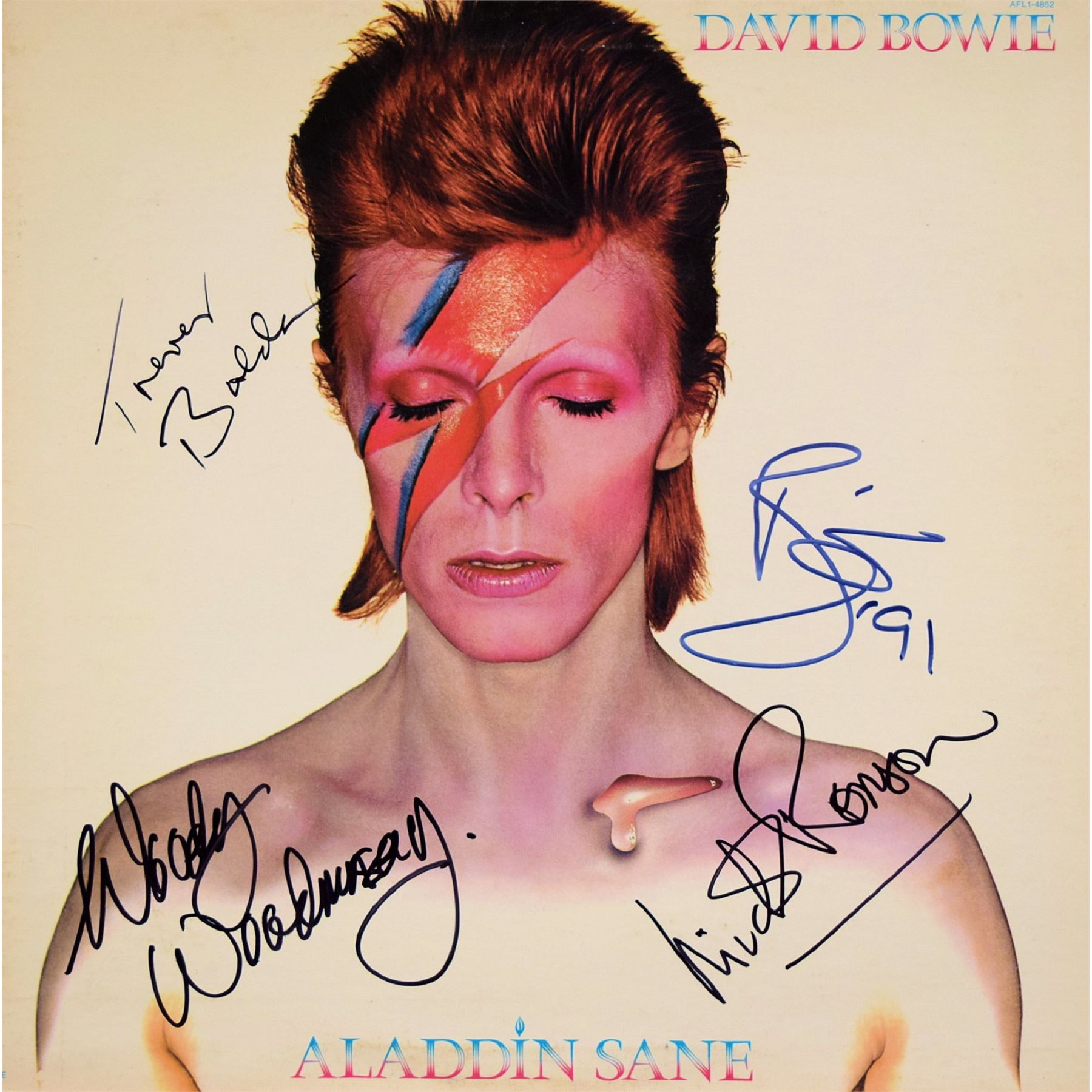 David Bowie 1973 Aladdin Sane album. Signed: David Bowie, Mick Ronson, Trevor Bolder & Woody Woodmansey.