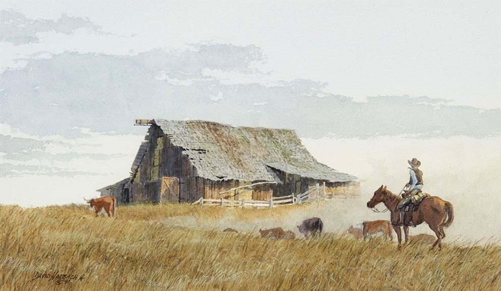 Artist: David Halbach; Title: The Last One In; Medium: Watercolor; Dimensions: 10 3/4 x 18 inches; Signed: Signed/ CA and dated lower left; Framed/Base: 18 x 25 inches