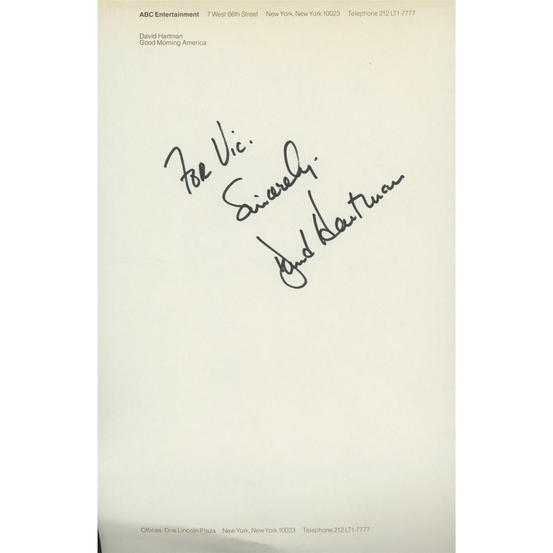 David Hartman signed note