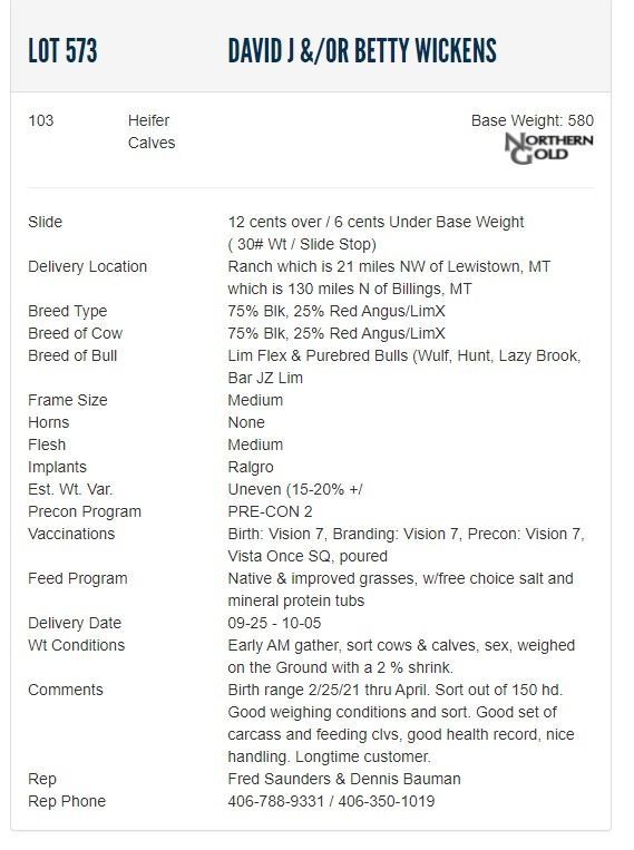 David J &/or Betty Wickens - 103 Heifers; Base Weight: 580