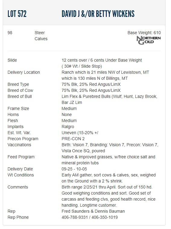 David J &/or Betty Wickens - 98 Steers; Base Weight: 610