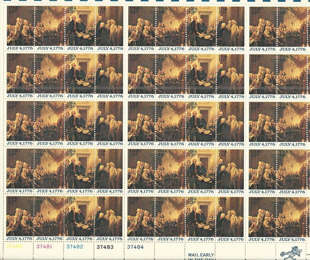 Declaration of Independence: Hancock and Thomson Stamps, 1976, Sheet of 50x13 c Stamps
