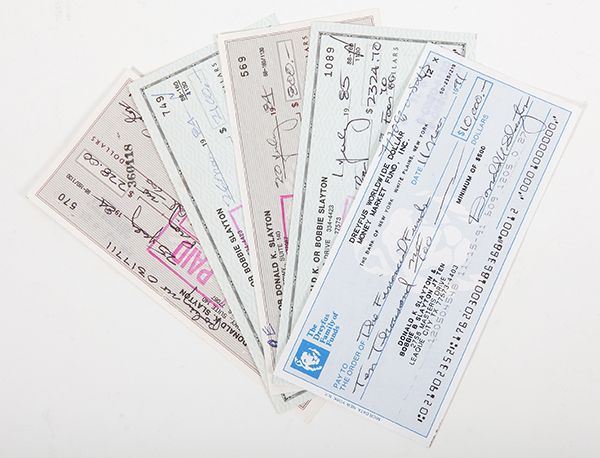 Deke Slayton Autographs � Signed Checks. Deke Slayton Autographs � signed checks. Lot of 5 similar, each drawn between 1984 /1991. 3 have League City addresses, 1 from Houston and one drawn on Dreyfus for $10,000. Each is boldly signed. Ex. the Astronaut Donald K. "Deke" Estate Collection.