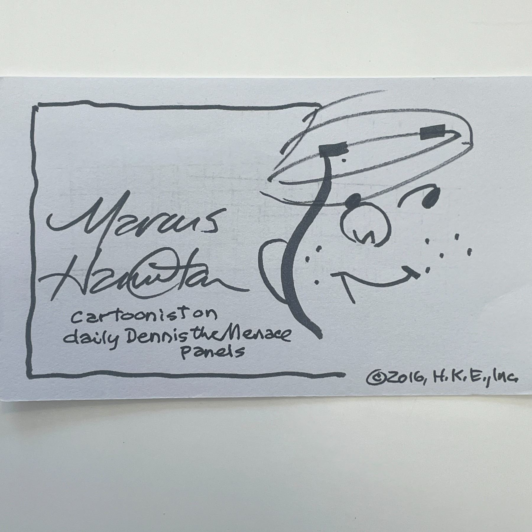 Dennis the Menace Cartoonist Marcus Hamilton original signature with hand drawn sketch