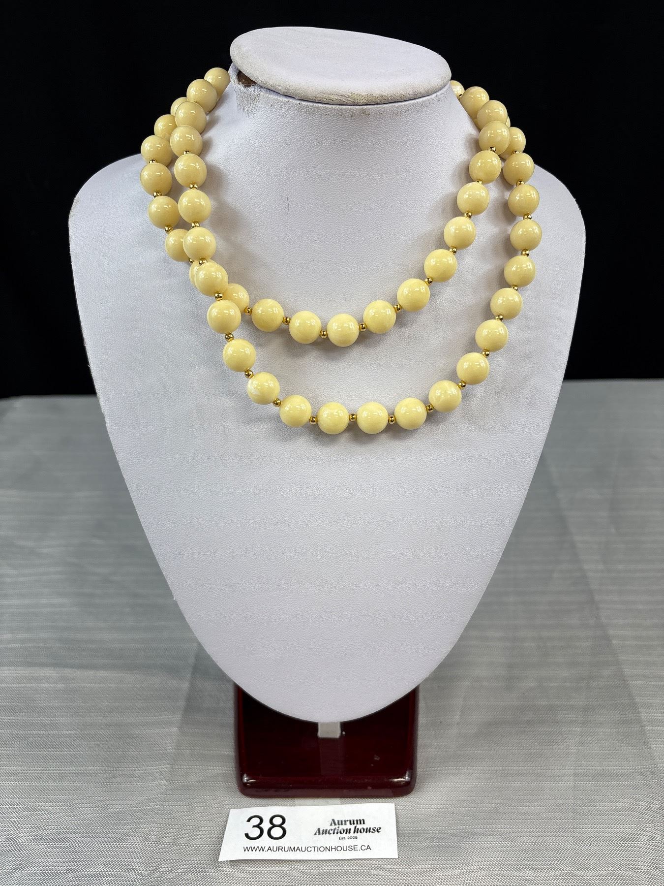 Designer Signed "Joan Rivers" Gold Bead + Celluloid Necklace