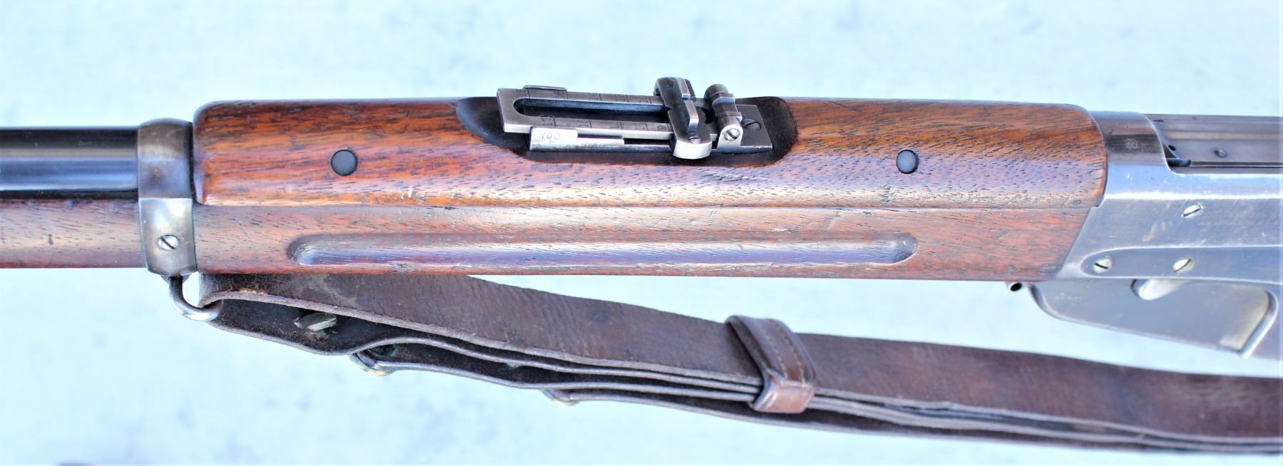 Serial #17511 Caliber 30-40 US Krag Manufactured 1898. Procured from Winchester for the State of Colorado during the period of Union unrest amongst Gold and Silver miners and mine operators. The scarce Winchester 1895 Musket with full length finger groove walnut stock with trap in but for cleaning tools and ladder adjustable Military pattern rear sight. Marked on right side of receiver “NATIONAL GUARD OF COLORADO” Chambered for the 30-40 US Krag cartridge and factory fitted with detachable sling swivels and sling. CONDITION, Very good with over 70% blue finish remaining. Stocks are very good and full sized. Action operates properly. ANTIQUE