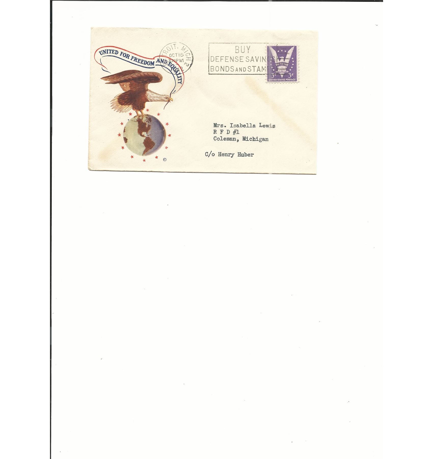 Detroit, MI - First Day Cover - Buy Defense Savings Bonds and Stamps Cancel - Oct 15th 1942