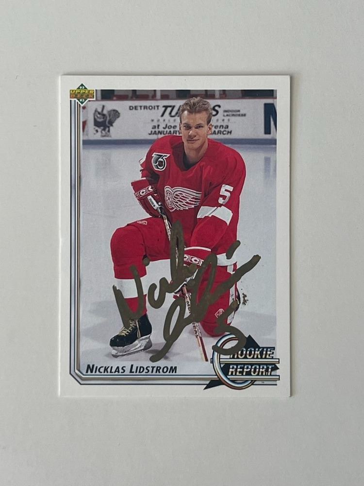 Detroit Red Wings Nicklas Lidström 1992 Upper Deck #363 signed trading card. 2x3 inches