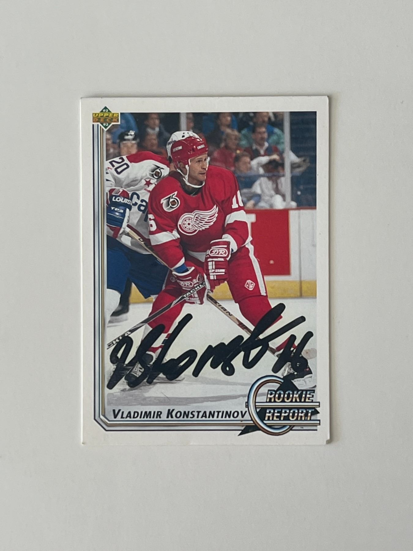 Detroit Red Wings Vladimir Konstantinov 1992 Upper Deck #357 signed trading card. 2x3 inches