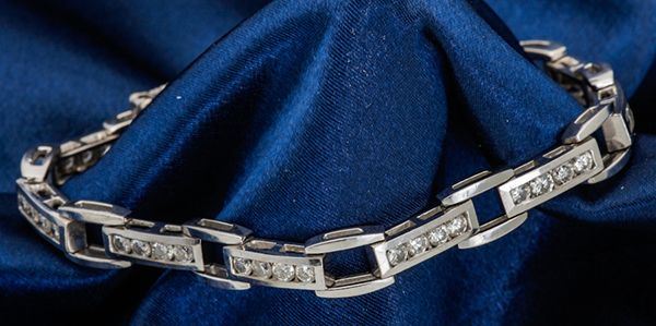 Diamond, 18k White Gold Modern Link Bracelet. Featuring 44 round full-cut diamonds, weighing a total of approximately 3.50 carats, channel set, gross weight 22.10 grams, measuring 7 1/2 inches in length.