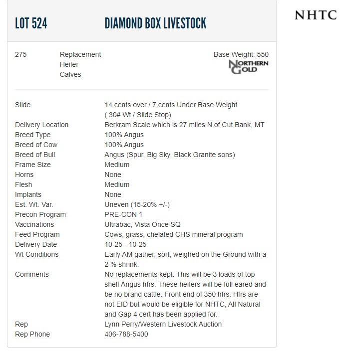 Diamond Box Livestock - 275 Replacement Heifers; Base Weight: 550