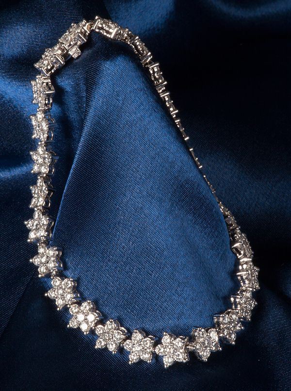Diamond, Platinum Floral Design Bracelet. Featuring round full cut diamonds, weighing a total of approximately 6.10 carats, VS2 to SI1 in clarity, G to H in color, measuring 7 inches in length, gross weight 20.10 grams.