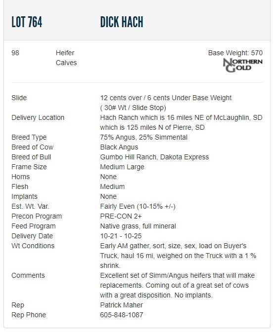 Delivery Location: Hach Ranch which is 16 miles NE of McLaughlin, SD