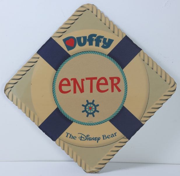 (Disney California Adventure, c. 2000's). A park used prop "enter" sign made for Disney California Adventure's "Duffy, the Disney Bear". The sign is in very good condition with normal wear from age and use in the park.