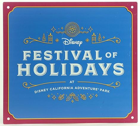 (Disney California Adventure, c. 2000's). A park used prop sign for Disney California Adventure "Festival Holidays." The sign is in good condition with normal wear from age and park use.