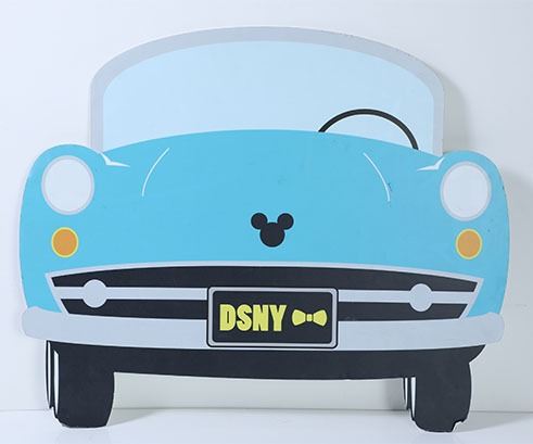 (Disney California Adventure, c. 2000's). A park used prop sign made for Disney California Adventure featuring a Disney Mickey Mouse car. The sign is in very good condition with normal wear from age and use in the park.