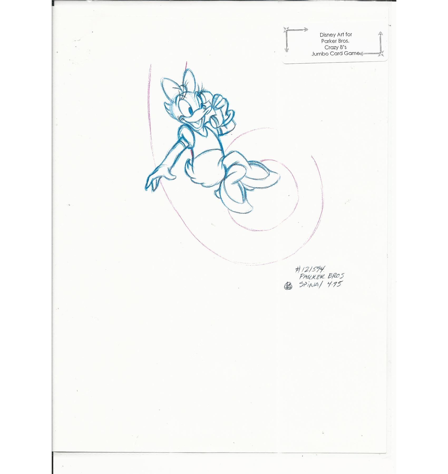 Disney Daisy Duck original hand drawn vintage art for Parker Bros. Hasbro Crazy 8's Jumbo Card Game. 8.5 x 11 inches