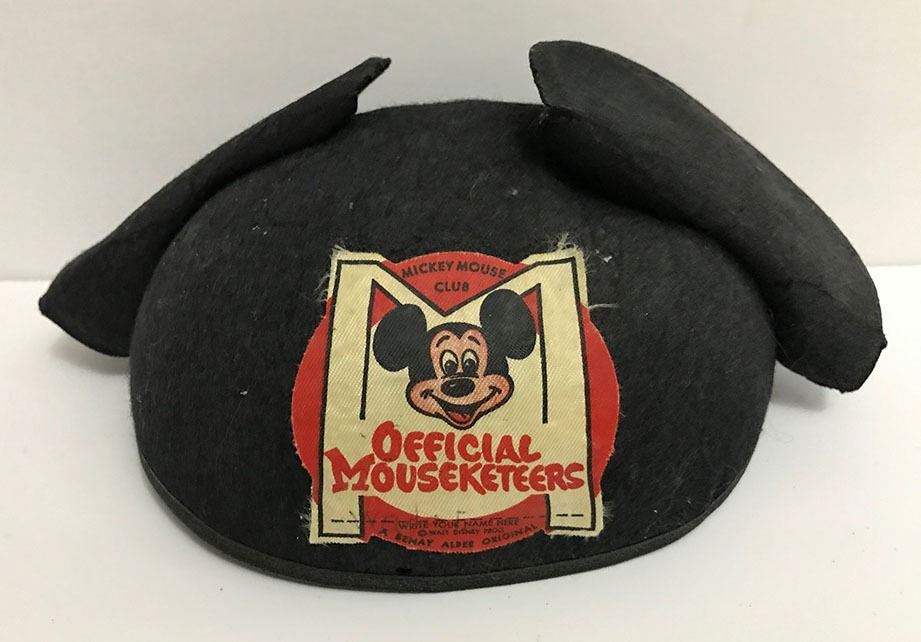 (Disney, c. 1950's). Very early and rare vintage Walt Disney Mickey Mouse Club Mouseketeer "mouse ears" that used a patch. Ears like these were also sold inside Disneyland in the 1950's. The mouse ears are in good condition with normal wear from age and minimal handling.