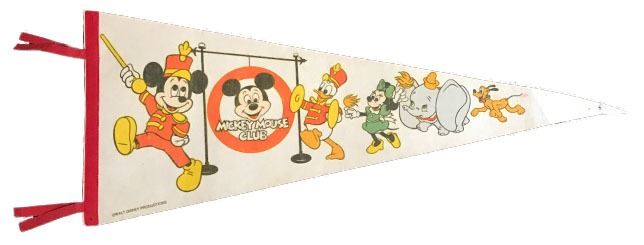 (Disney, c. 1960's-70's). A Disney Mickey Mouse Club pennant featuring Mickey Mouse. The pennant is in good condition with normal wear from age and handling. Item comes with a Grand Circle Tour Auctions COA.