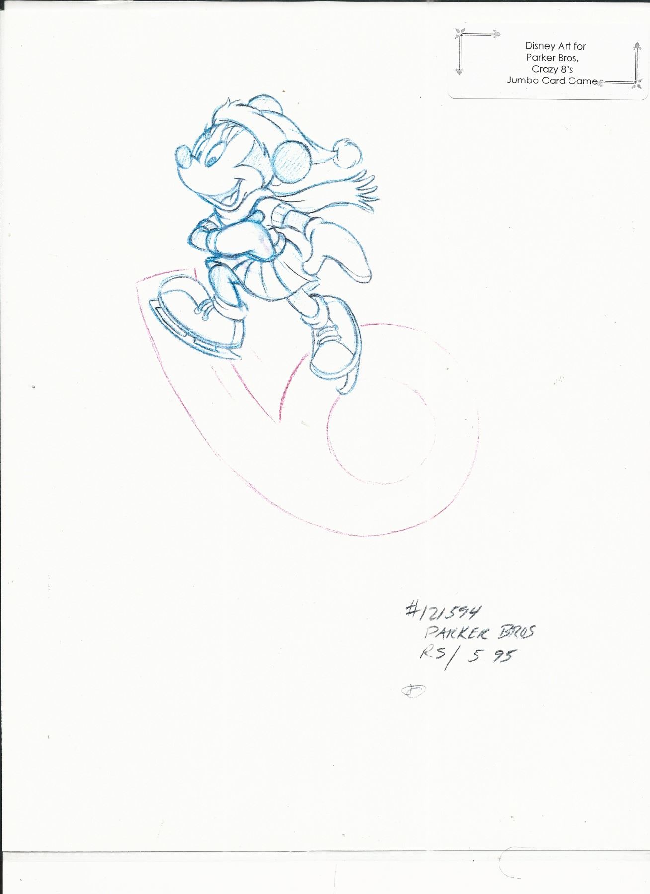 Disney Minnie Mouse original hand drawn vintage art for Parker Bros. Hasbro Crazy 8's Jumbo Card Game. 8.5 x 11 inches