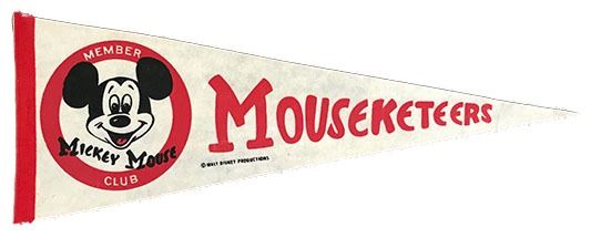 (Disney, c. 1960's-70's). A Disney Mouseketeer pennant featuring Mickey Mouse. The pennant is in good condition with normal wear from age and handling. Item comes with a Grand Circle Tour Auctions COA.