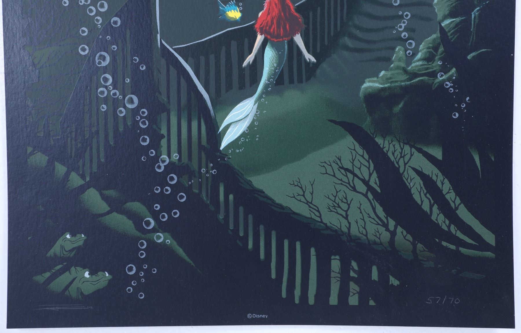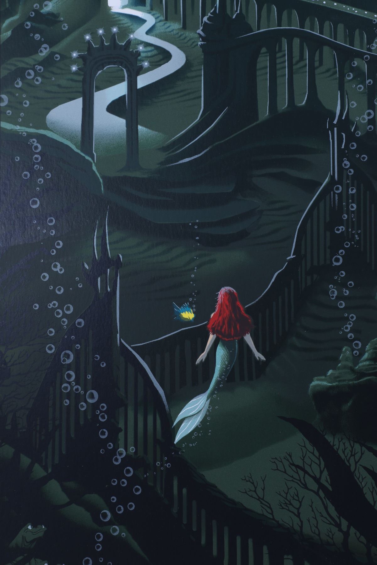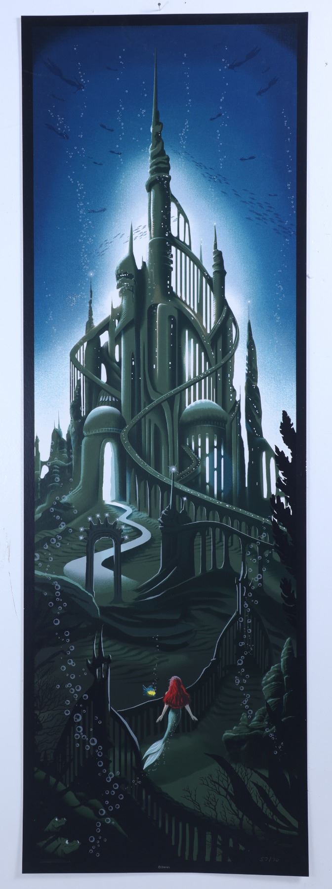 (D23. c. 2019) A very rare Artist Proof "The Little Mermaid " silkscreen poster in a limited edition of only 70 and created by artist JC Richard. These posters were not sold sign but the artist was approached and did sign the poster - a unique feature and bonus to this already rare poster. A poster that was only available at a D23 event in 2019. The poster measures approximately 36" x 12 ". An amazing piece that sold out quickly and created by one of the best artists of this new era of Disney art. Item comes with a Grand Circle Tour Auctions COA.
