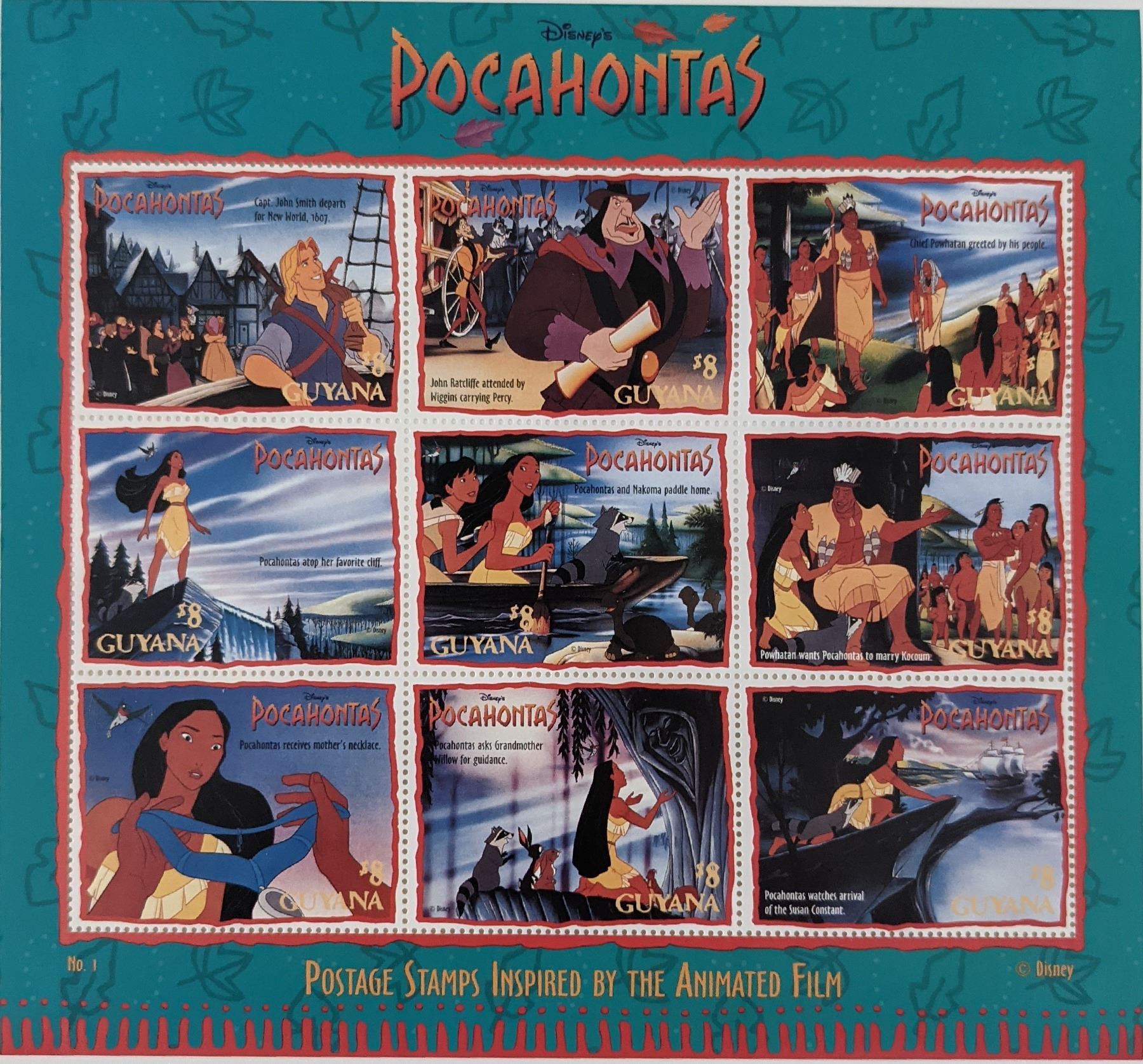 Disney's Pocahontas Stamp Sheet - Guyana - Set of 9 Stamps