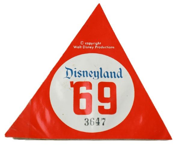 (Disneyland, c. 1969). A rare Disneyland parking sticker. Such stickers were not available to the public but rather were used by cast members or other employees or frequent contractors or VIPs that needed regular parking access. The sticker is in good condition with normal wear from age.