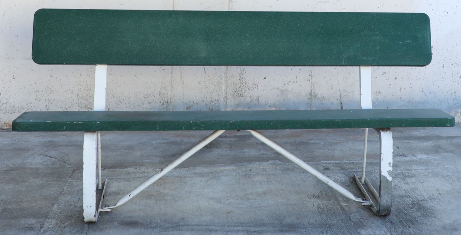 (Disneyland, 1970's-80's). A very rare park used Disneyland bench for cast members in the backlot. The bench is in good condition with normal wear from age and use and is marked with a tag that reads "DISNEYLAND, Guest Talent Programs, (714) 781-4132."