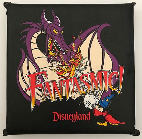 (Disneyland, Fantasmic! c. 1990's). A rare Disneyland "Fantasmic!" seat that was available to guests for purchase shortly after the attraction opened in 1992. The seat features beautiful imagery of Mickey Mouse as the Sorcerer's Apprentice battling Maleficent in her dragon form. The seat is in good condition with normal wear from age and use. Item comes with a Grand Circle Tour Auctions COA.