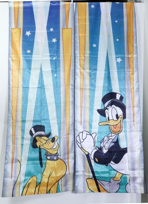 (Disneyland, c. 2015). Two very rare and exquisite park used prop banners made for Disneyland's 60th Diamond Anniversary featuring Donald Duck and Pluto. The banners are in very good condition with normal wear from age and use in the park.
