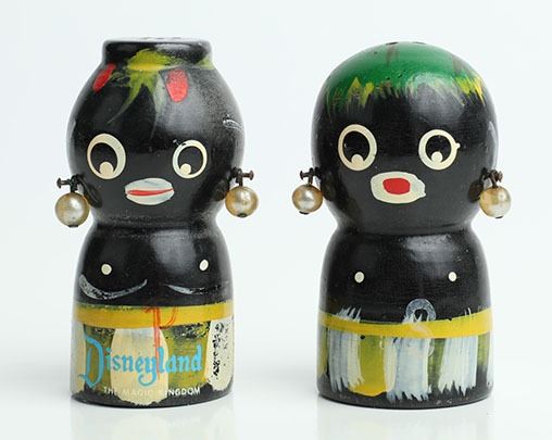 (Disneyland, c.1950's-1970's). Adventureland salt and pepper shakers individually hand-painted. The shakers are in good condition with normal wear from age. Also attached is the original Disneyland price tag