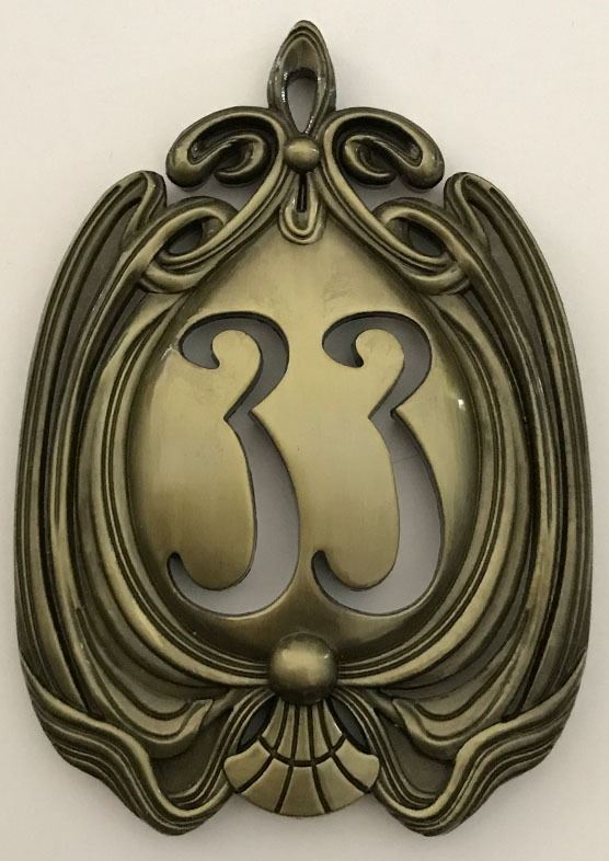 (Disneyland, Club 33, c. 2010's). A rare Disneyland Club 33 brass paperweight, or wall decorative piece, featuring the new logo for the restaurant following the 2014 renovation. The items measures approximately 5" x 3.5" and is in good condition with normal wear from age and minimal handling. Item comes with a Grand Circle Tour Auctions COA.