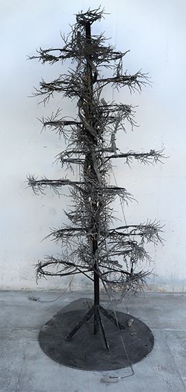 (Disneyland, c. 2000's). A Disneyland park used Halloween pumpkin tree. There are hoops in the tree branches were decorative pumpkins were placed, but have been removed. The tree is in good condition with normal wear from age and park use.