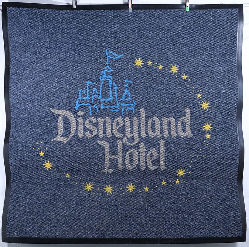 (Disneyland Hotel, c. 2010's). The Disneyland Hotel opened on October 5, 1955. Offered here is a Disneyland Hotel used prop rug. The rug is in good condition with normal wear from age and hotel use, including observable rippling. Measures 6ft x 6ft. Item comes with a Grand Circle Tour Auctions COA.