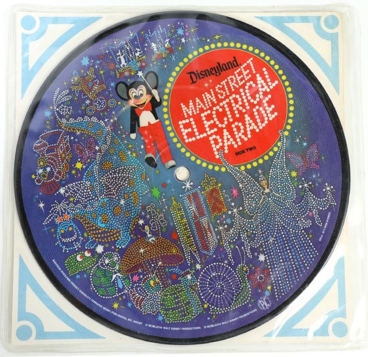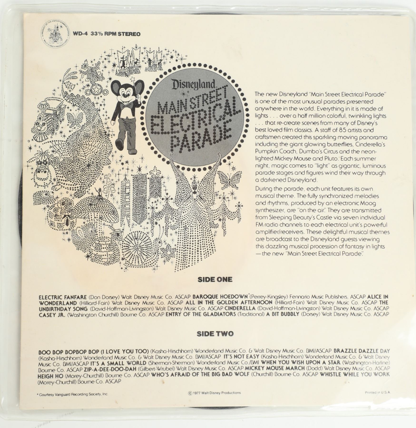 (Disneyland, Main Street U.S.A. c. 1977). A Disneyland Main Street Electrical Parade 7" record album. The album is in good working condition, in its original sleeve, with normal wear from age and minimal use, and measures approximately 7" x 7". Item comes with a Grand Circle Tour Auctions COA.